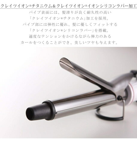 製品名 クレイツイオンカールプロ SR 26mm 型名:C73308 消費電力:44W 本体重量:約365g(コード込) サイズ:約L340×H80×W50mm 32mm 型名:C73310 消費電力:50W 本体重量:約430g(コード込) サイズ:約L340×H80×W50mm 38mm 型名:C73312 消費電力:60W 本体重量:約440g(コード込) サイズ:約L340×H80×W60mm パイプの長さ 約135mm 温度調節 10段階/120-130-140-150-160-170-180-190-200-210℃ 電源 100VAC コードの長さ 約3.0m 加工仕上 プレート部:クレイツイオンRチタニウム加工 パイプ部:クレイツイオンRチタニウム加工、 クレイツイオンRシリコンラバー加工 自動電源OFF機能 ○ 誤作動防止機能 ○ PAT アメリカ・イギリス・フランス・ドイツ・香港